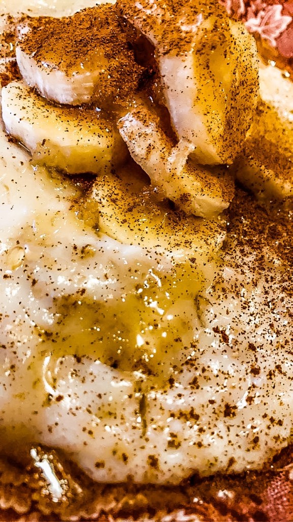 Transfer to serving bowl, add the rest of the banana, honey, and cinnamon.