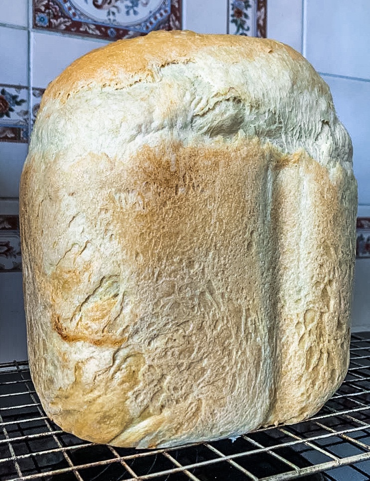 Home baked bread sliced with a 45yr old electric knife! One of my Mam & Dad’s anniversary gifts and still going strong! - First loaf from our new bread maker!